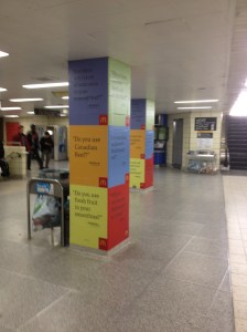 As previously mentioned, they have blanketed Toronto’s busy Yonge and Bloor station with ads. As a picture says 1,000 words (unless it’s a poster saying less than ten words), here are some more examples from the station.