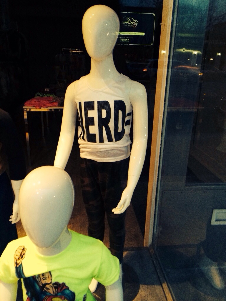 3. Perhaps this is meant to be worn ironically? Is it ironic if a school yard bully wears a t-shirt with “NERD” written on it, perhaps while giving a wedgie to the kid in the Superman shirt in the display? Yes, that would be ironic. However, if bullies were actually paying attention to the definition of “irony” in English class, they would themselves be knowledgeable enough to qualify as nerds by their own definition, meaning the shirt could not possibly be worn ironically by them.